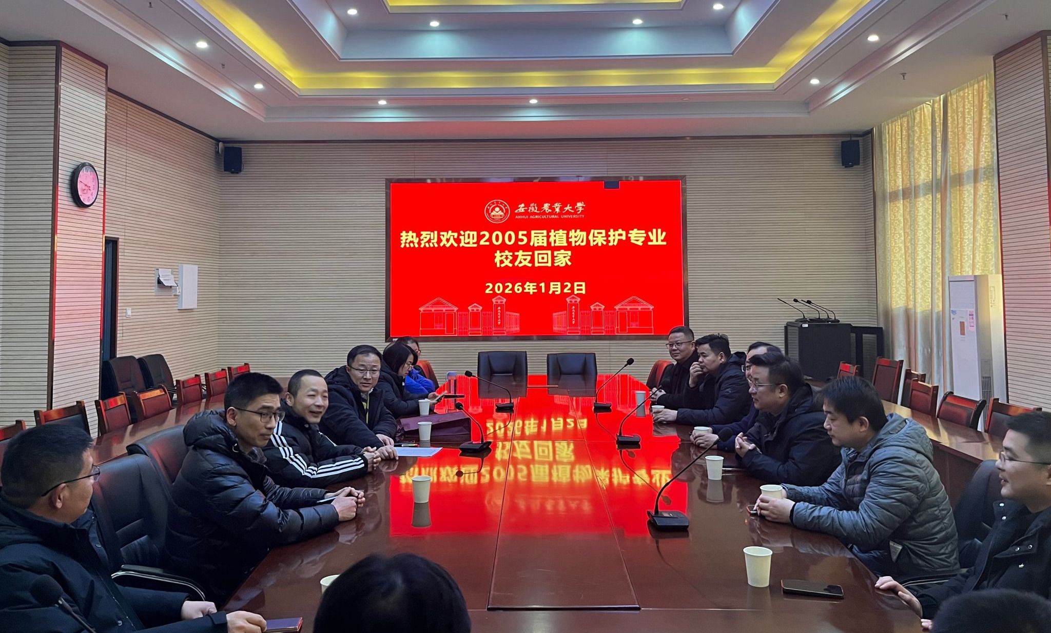 本网讯 1月2日,植物保护学院迎来了2005届植物保护专业近二十位校友阔别二十载返校,他们齐聚一堂共叙同窗情谊,近距离见证学院发展新貌。院党委书记刘柳、党委副书记郭振宇及部分教师代表参加了交流活动。