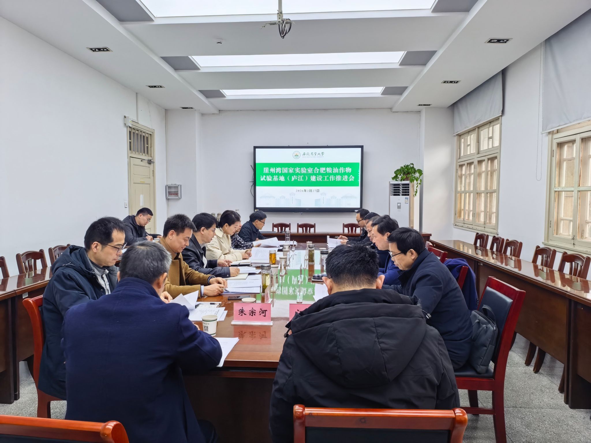 庐江县农业农村局、财政局、台创园管委会,我校科技处、社会合作处、皖中综合试验站负责同志及稻油作物团队教授参加会议。