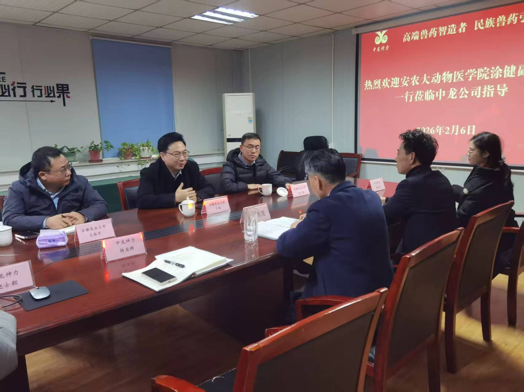 本网讯 2月6日,动物医学院副院长涂健带队赴合肥中龙神力动物药业有限公司开展访企拓岗专项交流活动,就深化产教融合、校企协同育人,精准对接企业人才需求等进行座谈。