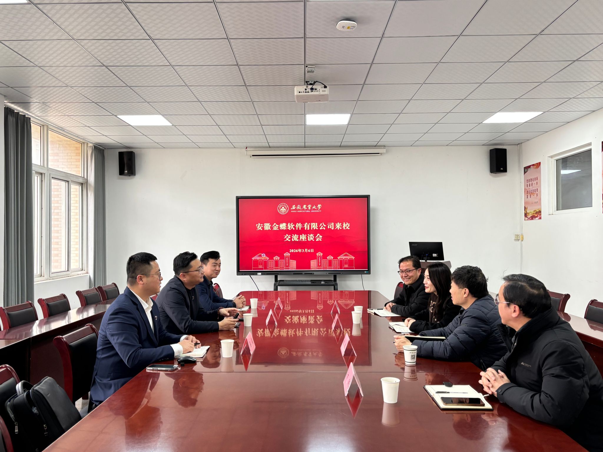 本网讯 3月6日下午,安徽金蝶软件有限公司总经理、我校2007届信息管理与信息系统专业优秀毕业生邢界鸥一行莅临我校,学院党政领导热情接待邢界鸥一行,并就校企合作、数智人才培养开展交流座谈。