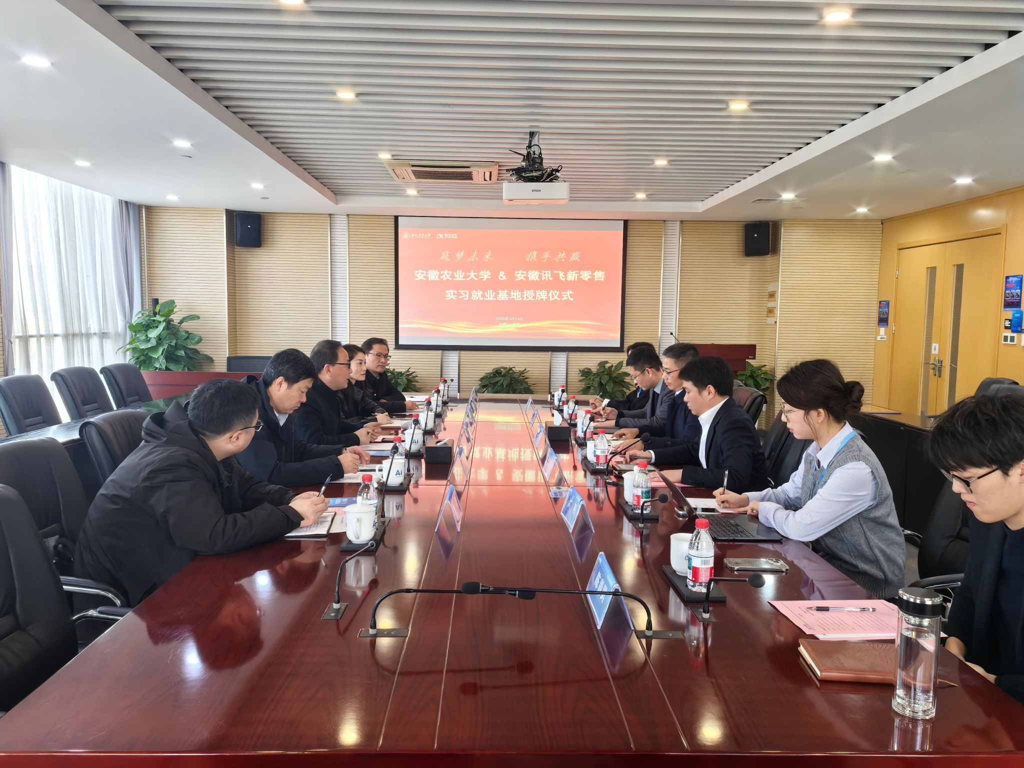 企业负责人介绍了公司发展及人才需求,阐述了公司人工智能硬件销售、全渠道运营等情况,企业方表示,期待与学校在人才培养、教学科研协同、实习基地建设等方面深度合作,助力双方发展同频共振,并希望吸纳更多优秀毕业生实现双向赋能。座谈会上,双方举行了校企合作签约仪式暨学生就业实习实践基地授牌仪式。