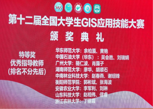 本网讯 12月1-3日,由中国地理学会、中国地理信息产业协会主办的“第十二届全国大学生GIS应用技能大赛”在广州大学举行,我校资源与环境学院参赛团队斩获特等奖。