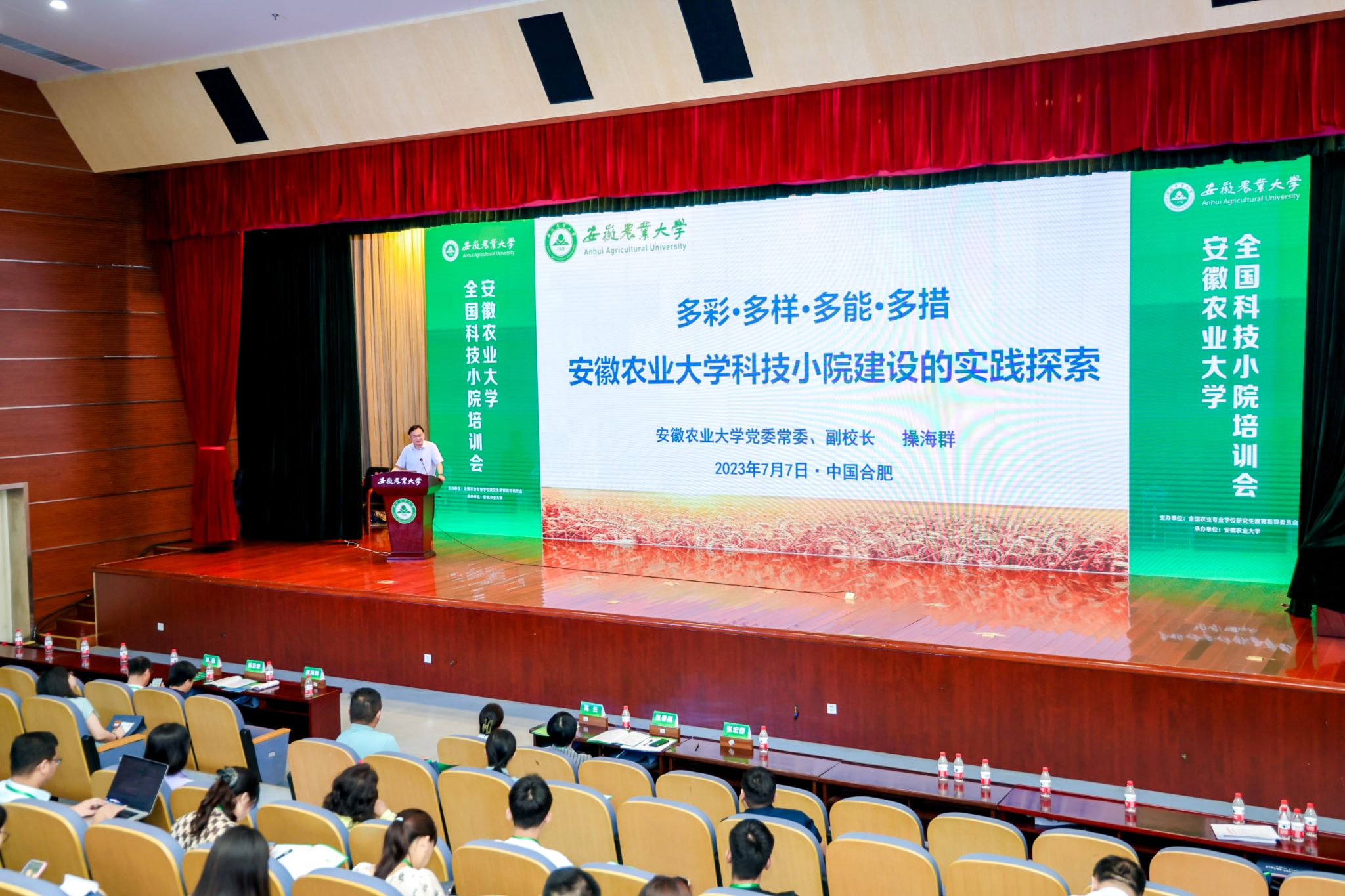 本网讯 7月7日上午,由全国农业专业学位研究生教育指导委员会主办、我校承办的全国科技小院培训会在图书馆第一报告厅召开。全国农业专业学位研究生教育指导委员会秘书处办公室主任陈范骏,教指委委员高强,安徽省教育厅科学研究与研究生教育处副处长杨修顺,中国农业大学曲周实验站副站长张宏彦教授以及全国科技小院师生代表参加会议。校党委常委、副校长李红代表学校致欢迎辞。校党委常委、副校长操海群主持开幕式。