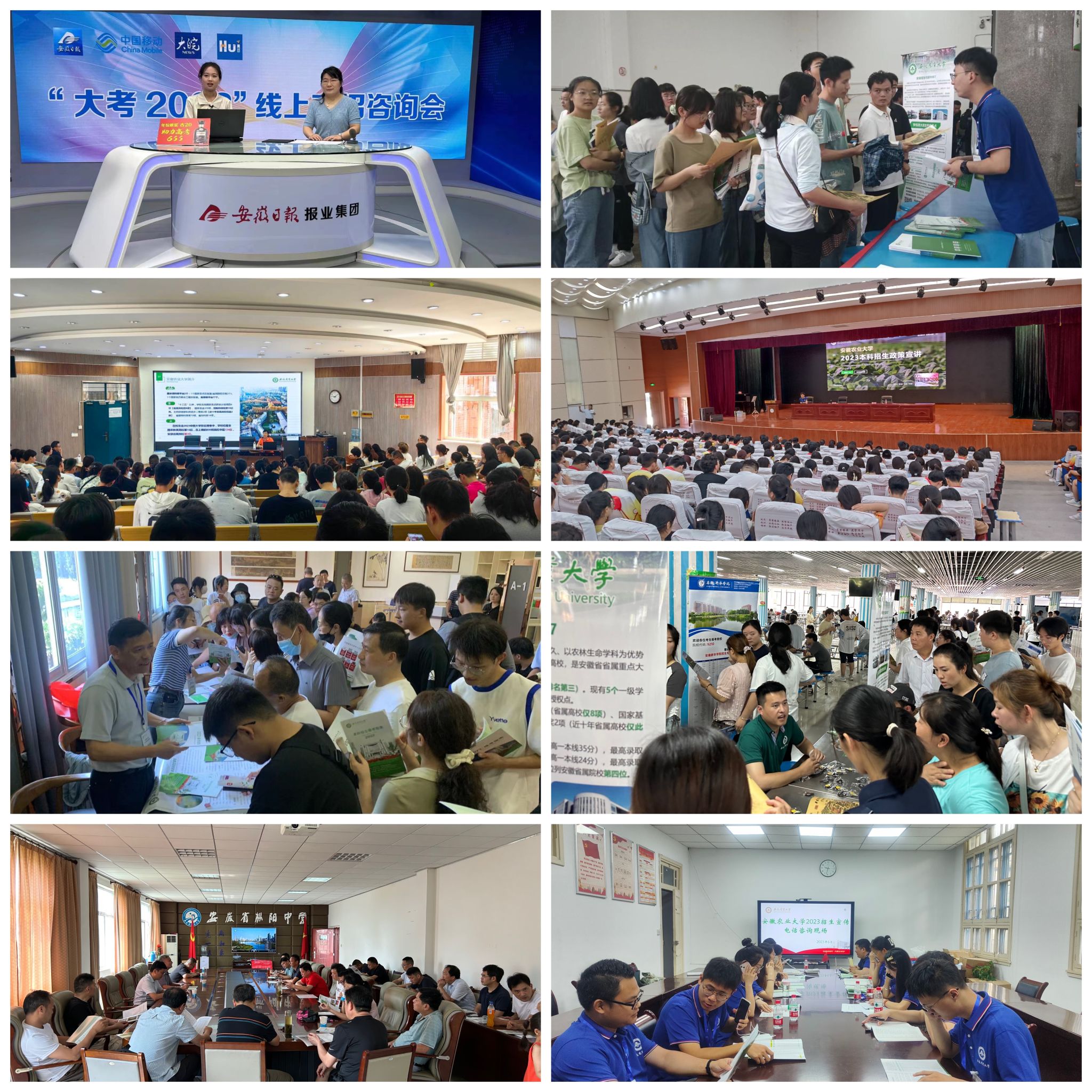 学校充分利用 6月24日—30日高考志愿填报黄金时期,培训选派全校招生骨干教师合计26组60余人参加省内外120余所省级示范中学高招咨询会。在各咨询会现场,宣传队工作人员不辞辛劳,顶高温,冒酷暑,热情、耐心地解答现场考生和家长关注的热点问题。学校还积极利用央视频、安徽公共频道、安徽日报、安徽省考试院官方直播等公共媒体开展招生宣传,其中中央广播电视总台农业农村频道第二届“最炫农科生”融媒体直播,累计浏览量超300万。拍摄发布包括“书记高考送祝福视频”在内的各类宣传视频40余部,制作招生宣传PPT16个。同时首次开通智能电话热线系统,20路招生热线同时接听,及时全面向广大考生及家长详细解读了我校的各项招生政策,帮助考生、家长更为合理的填报志愿,进一步提升了我校吸引力和社会知名度。