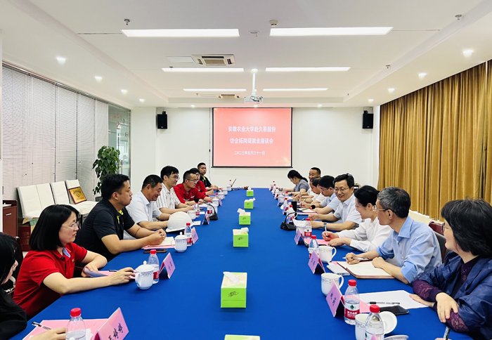 张庆亮对久易农业在创业板IPO首发获得通过表示热烈祝贺,并对公司多年来对我校人才培养、科技创新和就业实习等方面工作的支持表示衷心感谢。他指出,久易农业与安农在产教学研方面开展深入合作,多次成功联合申报省重大科技专项项目,联合开展专利成果转化,签订产学研用合作协议,为学校建设捐资赠物,给予大力支持,体现了校友企业的社会责任、“三农”担当和“安农”情怀。他强调,希望以本次访企拓岗为契机,进一步深化校企合作,充分发挥各方优势,为服务地方经济建设作出更大贡献。