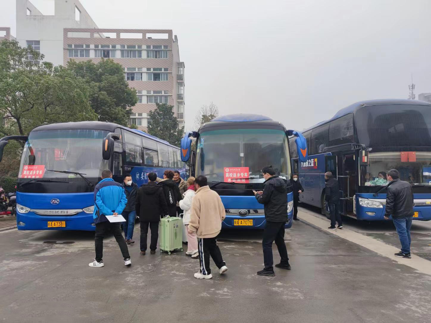 本网讯 为保障学生健康安全离校返乡,党政办公室、党委学工部、后勤保障处积极为返乡学生提供送站服务。12月9日起,每天根据前期统计的乘车时间,安排专车直送学生到合肥南站、合肥站,“点对点”做好送站服务和保障。