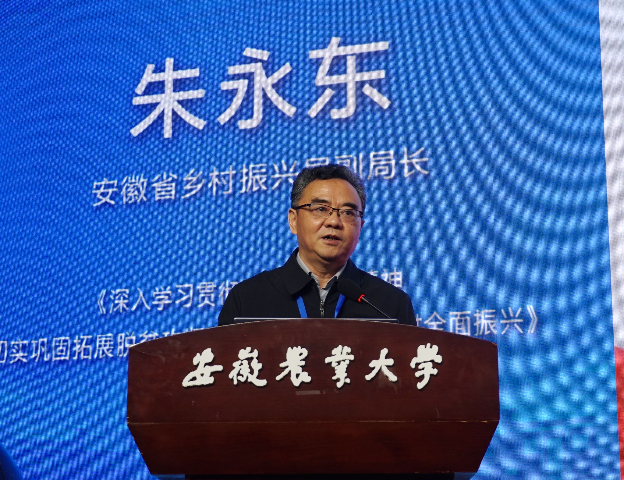 朱永东作了题为《深入学习贯彻党的二十大精神 切实巩固拓展脱贫攻坚成果 加快推进乡村全面振兴》,他指出脱贫攻坚胜利是以咬定青山不放松的精神奋斗出来的,站在第二个百年奋斗目标的起航期,将把脱贫攻坚成果巩固拓展好,把乡村全面振兴加快推进好,让脱贫地区和脱贫群众在共同富裕的道路上迈出新步伐,奋力打造徽风皖韵、宜居宜业和美乡村的安徽样板。