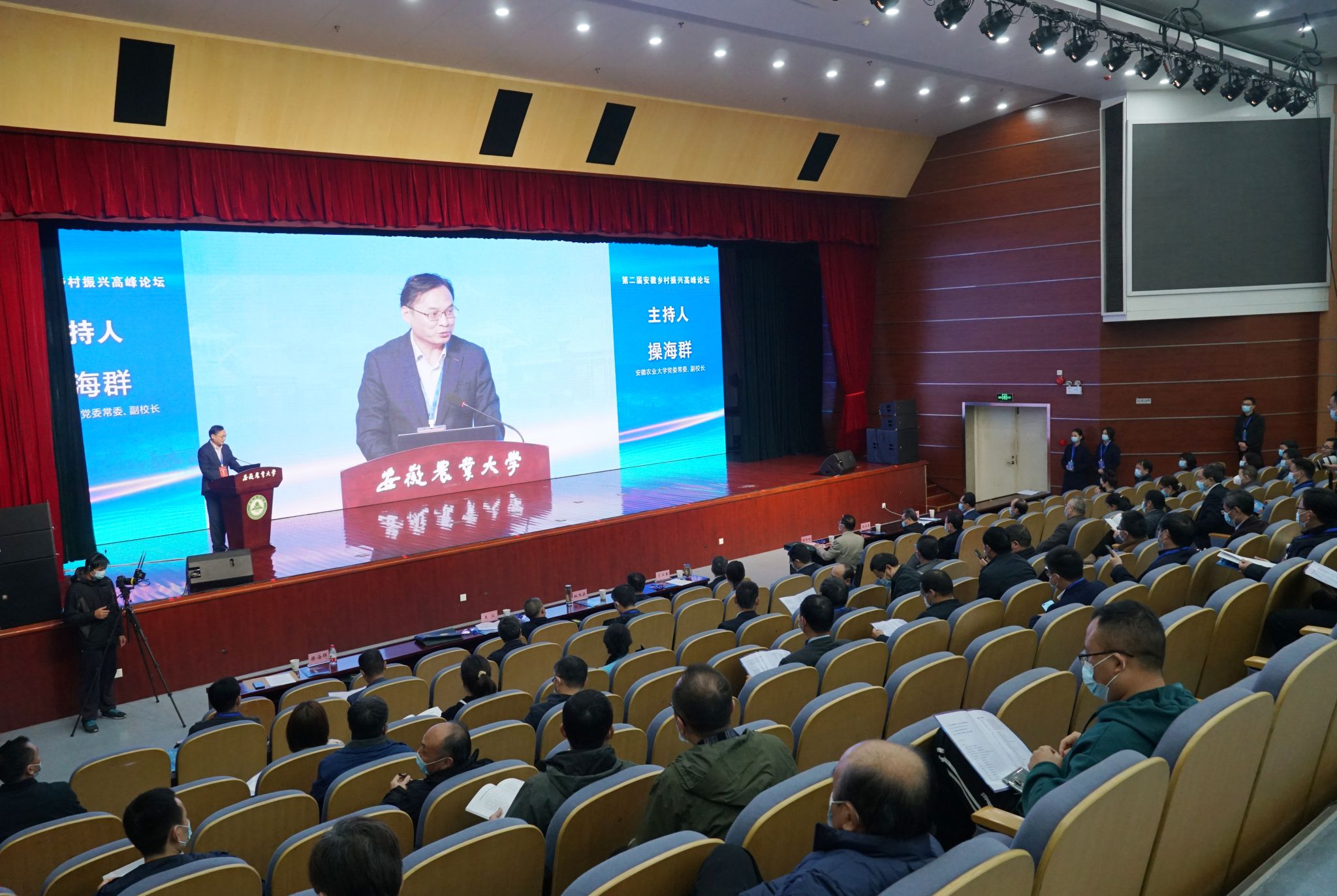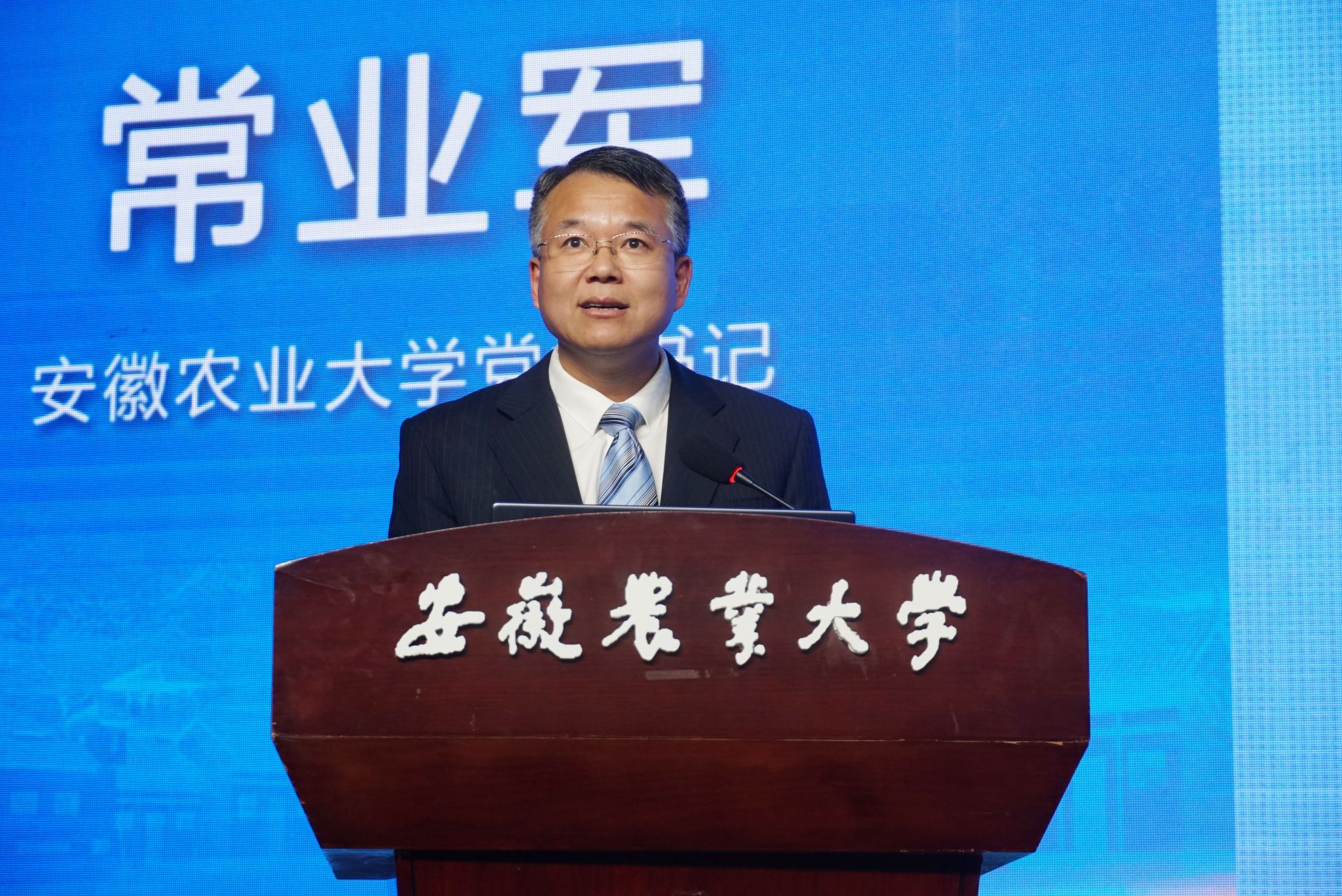 常业军在致辞中指出,本次论坛旨在深入贯彻落实党的二十大精神,探索全面推进乡村振兴新路径,谋划乡村全面振兴新举措,寻求共推乡村振兴新机制,并对学校助力乡村振兴工作作了介绍。他表示,作为农业大学,有责任在助力“两强一增”,赋能乡村产业、人才振兴中打头阵、挑重担,学校将坚定服务“三农”的办学方向,充分发挥人才库、创新源、智囊团的作用,与省农业农村厅、乡村振兴局及各市县区加强交流,深化合作,打造一批两强一增、乡村振兴的“安农样板”,形成可复制、可推广的“安农经验”,努力在推动我省由农业大省向农业强省转变中当主力、作贡献。