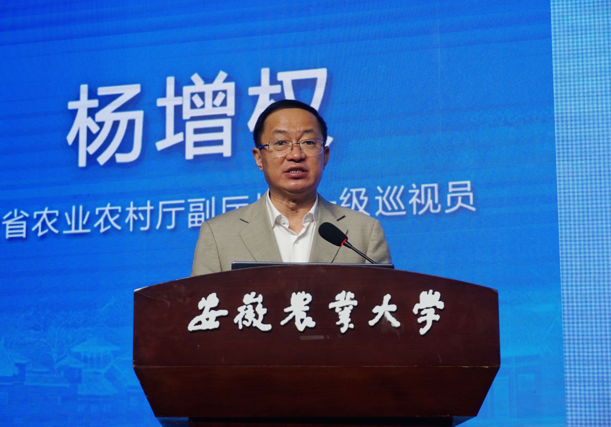 省教育厅科学研究与研究生处副处长汪峰涛代表省教育厅致辞表示,安农大始终坚持服务“三农”的办学方向,以立德树人为根本,以强农兴农为己任,扎根江淮大地,为我省全面推进乡村振兴,加快农业农村现代化的步伐做出了重要贡献。希望学校要加快农业科技原始创新,积极解决制约农业发展的瓶颈问题,依托乡村振兴协同技术服务中心等服务“三农”的平台,加快新品种、新技术、新产品等重大科技成果推广应用,在确保国家粮食安全,推进乡村振兴,实现农业农村现代化,实施“两强一增”行动中展现出安农魅力。