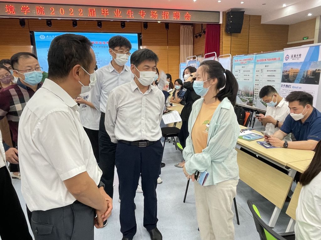 校党委书记常业军,常务副校长马传喜,党委常委、副校长韩军,招生就业处及资源与环境学院主要负责同志深入现场调研毕业生就业情况,与现场负责人沟通交流,了解企业岗位需求、招聘条件及学生应聘情况,并与求职学生亲切交谈,鼓励同学们利用好校园招聘平台,调整心态,把握就业机会,快就业、早就业。