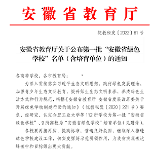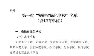 近日,省教育厅公布了第一批“安徽省绿色学校”(含创建单位)名单,全省共有10所高校获批,我校位列其中。