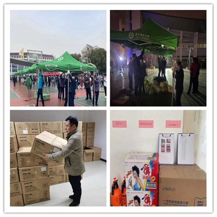 3月14日,学校全员核酸检测,后勤保障处应急发放口罩2.4万只,组织物业投入40人次,搭设帐篷44顶,摆放核酸检测台44个。“全员核酸检测完毕后,我们对现场进行撤场,协助清理医疗垃圾,一直工作至凌晨0点40分。”后勤保障处王政说,“根据学校修订的全员核酸检测应急预案,我们设置了三个核酸检测物资储备室,每个储备室放置15顶帐篷,15张桌子,30张凳子,4000只口罩,确保一声令下,随时布设好核酸检测工作台,为核酸检测争分夺秒”。为全力做好疫情防控应急响应处置工作,后勤保障处按照“宁可备而不用,不可用而不备”的原则,加强各类物资储备。学校现存防护服2000件,一次性医用外科口罩5.2万只,通过绿色采购通道采购的26万只一次性医用外科口罩,近日到位。追加采购52万只口罩,已挂网竞价,要求30日完成供货。2万只KN95口罩合肥金维特仪器有限公司中标,25日供货。另还库存消毒液2980瓶(斤),洗手液280瓶,水银温计5千只,额温枪17只。同时,还专门设立疫情防控物资储备库房并由专人管理,安全妥善的保管防控器材及消毒剂,加固加牢疫情防控物资供应链,提高应急保障能力。