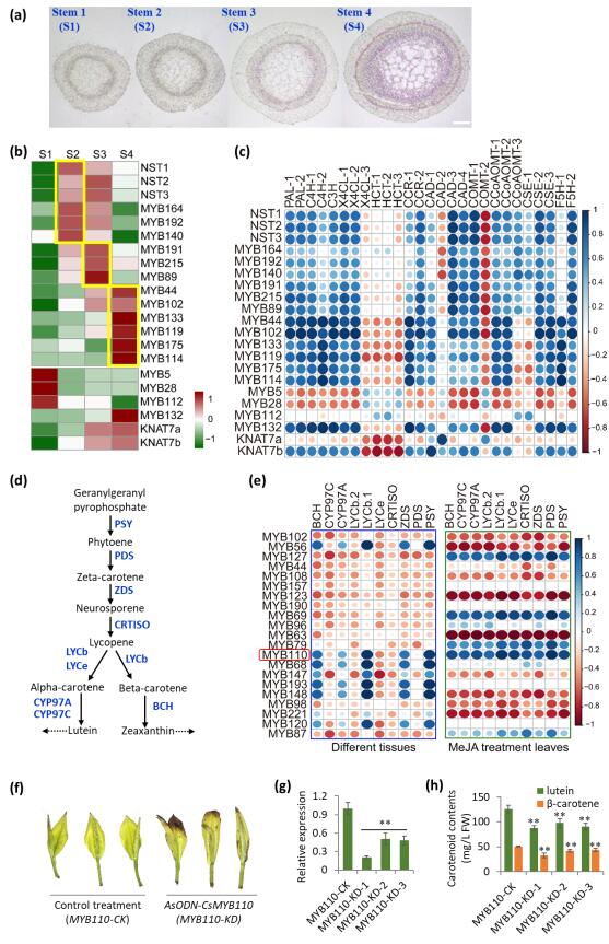 图2:茶树中参与木质素和胡萝卜素合成的MYB转录因子筛选和功能鉴定