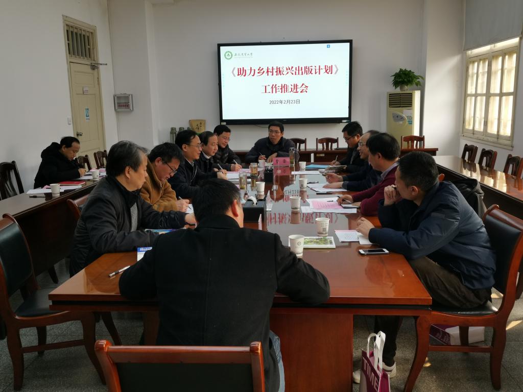 操海群指出,自承担“助力乡村振兴出版计划”以来,在学校高度重视下和相关单位及编写人员的共同努力下,首期书目编写工作取得了预期成果。对下阶段工作,他强调,要拉高工作标杆,抓牢工作重点,把编写工作作为我校“改作风,办实事,办大事”的举措,以精雕细琢的态度提高编写效率和质量。要强化组织实施,建立工作机制,明确路线图、时间表,确保编写工作按计划有序推进。要加大宣传力度,充分挖掘我校服务乡村振兴战略的先进事迹和典型做法,助力出版书目的社会影响和效益。
