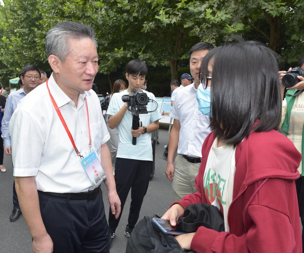 校领导在迎新现场与广大新生交流时,语重心长地寄语大家,走进大学是同学们人生的新起点,要勇担新时代青春使命,敢于吃苦、勇于奋斗,只争朝夕、不负韶华,用勤奋和努力让青春之花绚丽绽放。
