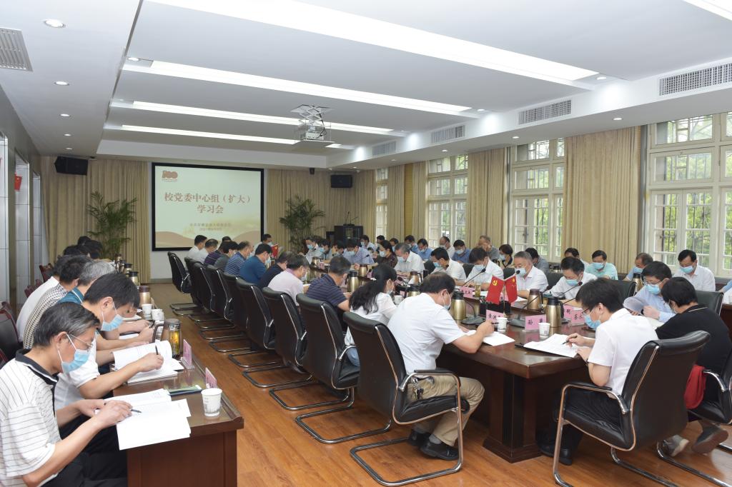 本网讯 9月3日上午,校党委中心组(扩大)学习会议开展集中学习研讨。校党委书记江春主持会议。校领导裴树东、李红、马传喜、韩军、陈文兵、操海群出席会议。校党委中心组成员,机关各部门、校直各单位主要负责人,各学院党政主要负责人参加会议。