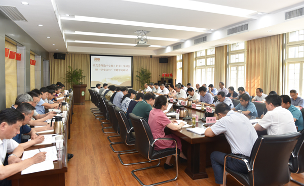 本网讯 6月24日下午,我校在第三会议室召开党委理论中心组(扩大)学习,集中学习党的十八大以来的历史,开展“学史力行”专题学习研讨。校党委书记江春主持会议。校领导裴树东、李红、韩军、陈文兵、操海群出席会议。校党委中心组成员,机关各部门、校直各单位主要负责人,各学院党政主要负责人参加会议。