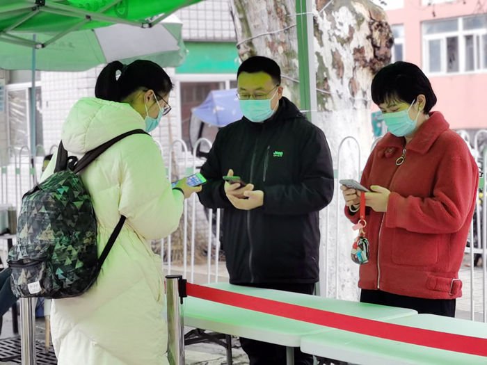 本网讯 扫“安康码”,进行体温检测,核验“返校二维码”,二分钟时间,2016级林学与园林学院城乡规划专业李同学就办好了手续,进入学校。