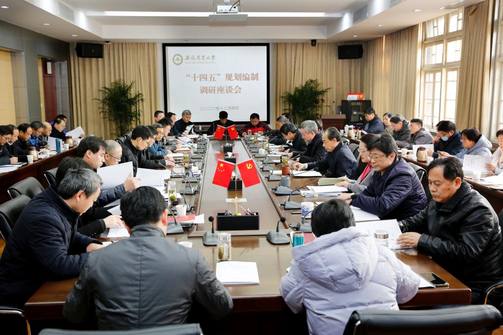 本网讯 12月4日下午,我校召开“十四五”规划编制调研座谈会。会议由校党委书记江春主持,校领导夏涛、裴树东、李红、马传喜、韩军、陈文兵、操海群出席会议。机关各部门、校直各单位主要负责人,各学院党政主要负责人参加会议。