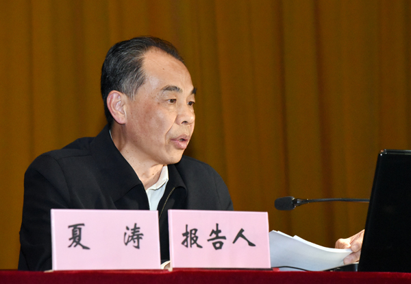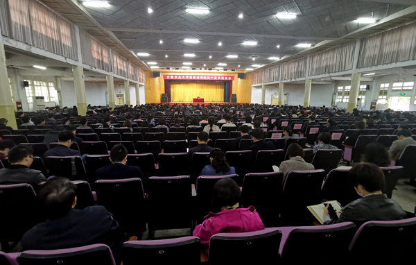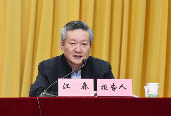 本网讯 10月26日下午,校党委讲师团在校大礼堂举办首场集中宣讲报告会,校党委书记江春和校长夏涛做专题宣讲报告,全校副科级以上干部、思政课教师、辅导员、党支部书记和部分学生代表参加了报告会。