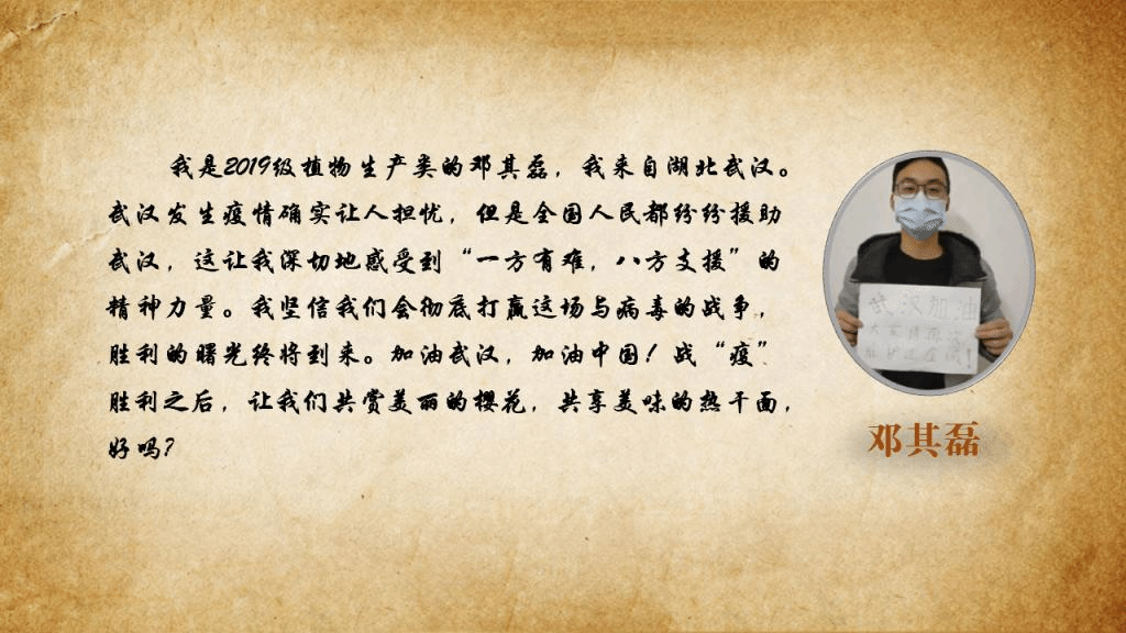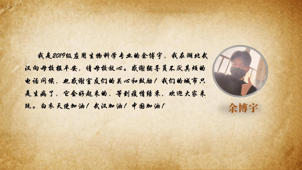 新冠肺炎疫情爆发以来,武汉市乃至整个湖北省牵动着亿万国人的心。全校湖北籍学子也成为我们大家最深的牵挂。他们现在身体还健康吗?和家人过得好吗?生活还方便吗?他们的家乡怎么样了?一起来听一听湖北籍学子的心声。