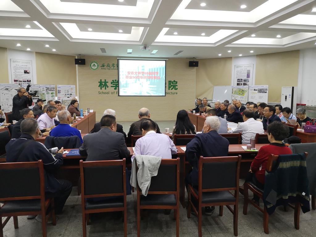 本网讯 半世纪重聚首,母校情永存心,丹桂飘香的季节,林学专业69届40余名校友及校友家属从全国全省各地回到母校,举行纪念毕业50周年聚会活动,10月12日下午,校友座谈会在林学楼二楼报告厅举办。校招生就业处处长刘海涛、学院党委书记唐红萍、院长刘盛全参加座谈会。