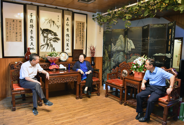 校领导对江泽慧校友为学校发展做出的突出贡献表示崇高的敬意,对江泽慧校友长期以来关注支持母校事业发展表示衷心的感谢,并介绍了学校近年来奋力建设高水平农业大学的工作以及取得的成果,他们表示,今年是学校建校90周年,学校发展站在新起点,恳请江泽慧校友回母校参加校庆活动,为母校发展提出宝贵的意见和建议。