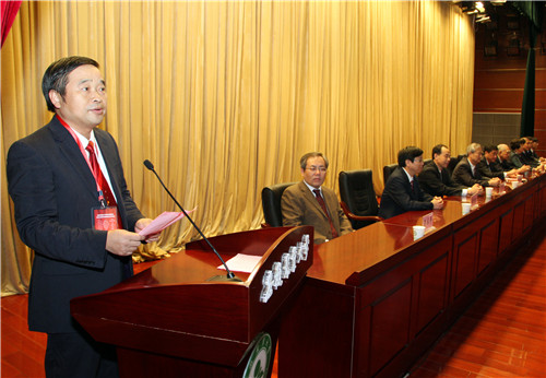 校友代表86届农学专业孔琦同志发言,他对母校的培养表示感谢,对学校发展取得的成绩表示祝贺,表示广大校友将一如既往地关注母校,继续秉承校训精神,不忘初心,勤奋学习,扎实工作,锐意进取,为祖国的建设添彩,以优异的成绩为母校争光。