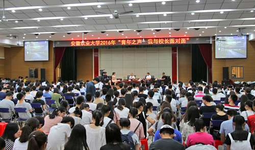 本网讯 反映青年呼声,回应青年诉求,维护青年权益,服务青年成长。6月15日下午, 2016年“青年之声·我与校长面对面”活动在欣苑学生活动中心举办。校长程备久,副校长马传喜、蒋家平与同学们倾情互动。校党委副书记李恩年,相关单位负责人、各学院分管学生工作负责人以及来自各学院的400余名学生代表参加了活动。