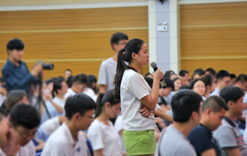 针对“当代大学生应该做好哪些准备来迎接创新创业的机遇和挑战”这个问题,程备久说到“希望同学们能够正确理解学校实施创新创业教育改革的实质和内涵,把握好‘炼苗’这个环节,强化能力素质、意识意志两个方面的准备”。