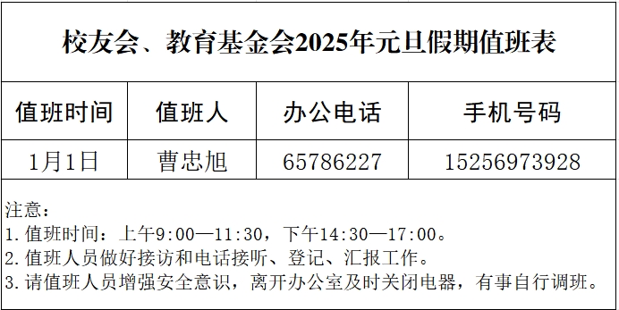 校友会、教育基金会2025年元旦假期值班表
