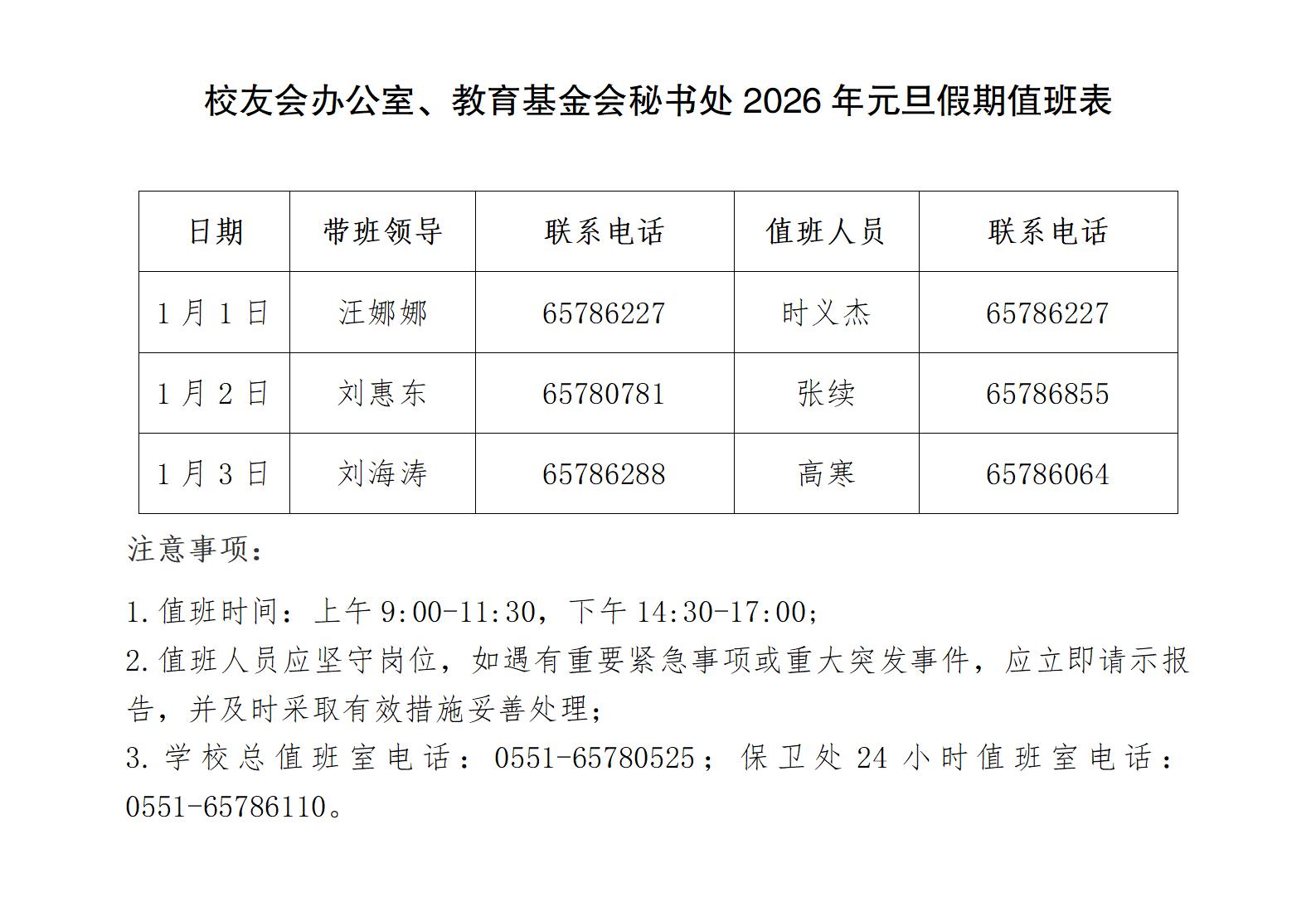 校友会办公室、教育基金会秘书处2026年元旦假期值班表